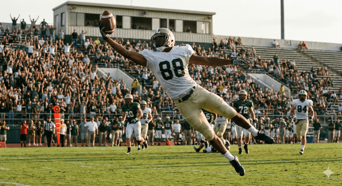 hands configured to secure the ball.Additionally, the receiver must plan to manage inertia so that both feet land inbounds. Analyzing the physics and doing all the math involved would be daunting at best. Yet, the receiver’s human brain is not only doing the calculations but is directing a multitude of muscles to controlthe receiver’s body parts where they need to be at just the time they need to be there. Of course, this is all being done in a constantly changing environment requiring countless adjustments. It works because of the countless hours oftraining and practice that player has endured.