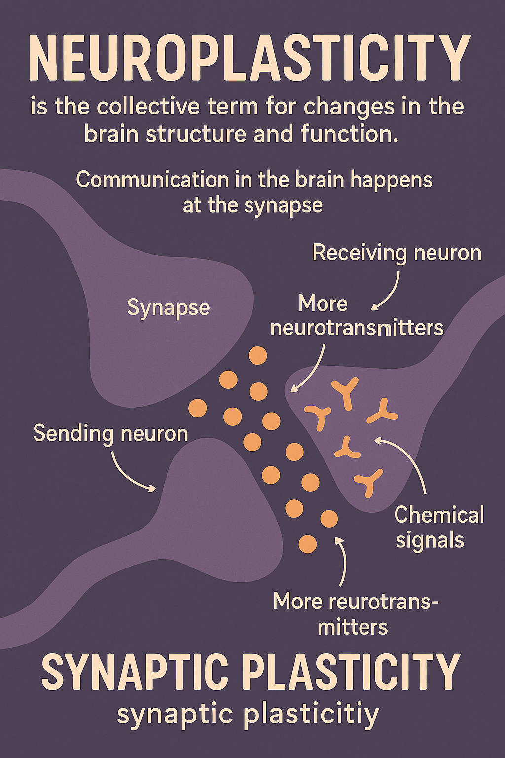 That training and practice has figuratively rewired theplayer’s unconscious mind. Neuroplasticity is the collective term for changes in the brain structure and function. Communication in the brain happens at the synapse, the tiny gap between two neurons. The receiving neuron adds more receptors to its surface to catch chemical signals faster. The sending neuron starts releasing more neurotransmitters. This results in the signal moving across the gap with much less effort and higher reliability. The technical term for this is synaptic plasticity.